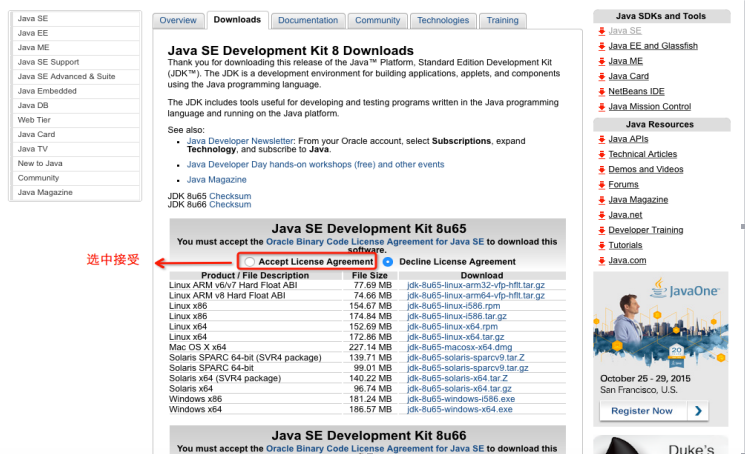 地址:http://www.oracle.com/technetwork/java/javase/downloads/jdk8-downloads-2133151.html