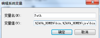 6、在系统变量中找到变量名未path,点击编辑,在变量值后,添加%JAVA_HOME%\bin;%JAVA_HOME%\jre\bin 点击确定。
