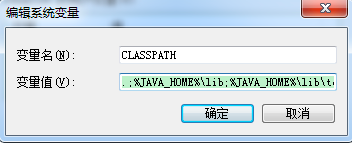 配置CLASSPATH。新建,变量名CLASSPATH,变量值,.;%JAVA_HOME%\lib;%JAVA_HOME%\lib\tools.jar(第一个分号前前面有一个点)