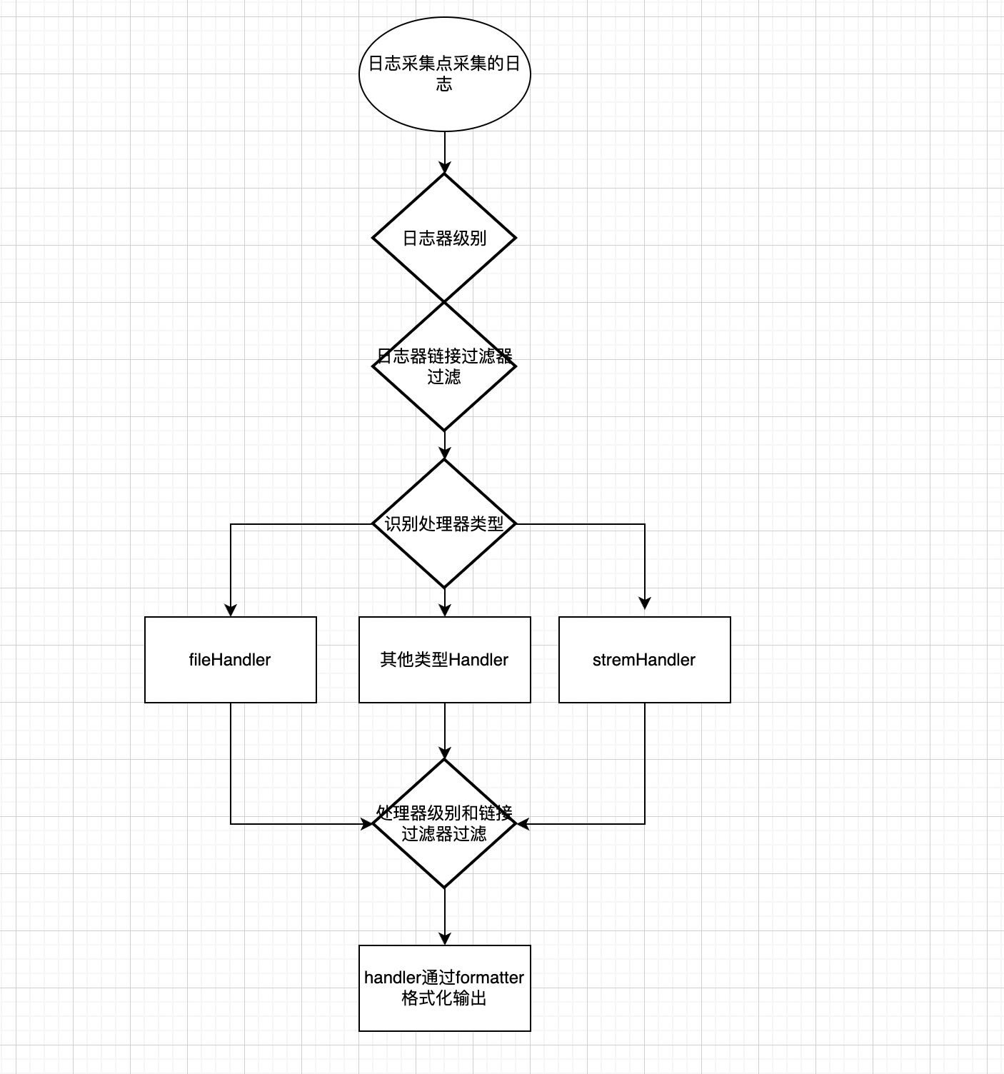 简单点说就是:日志器(logger)是入口,真正干活儿的是处理器(handler),处理器(handler)还可以通过过滤器(filter)和格式器(formatter)对要输出的日志内容做过滤和格式化等处理操作。