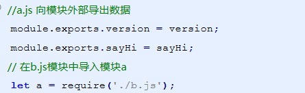 4.模块内部可以使用exports对象进行成员导出, 使用require方法导入其他模块