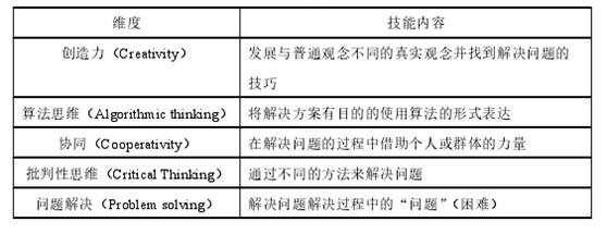 •计算思维技能分为:创造力、算法思维、协同、批判性思维、问题解决。