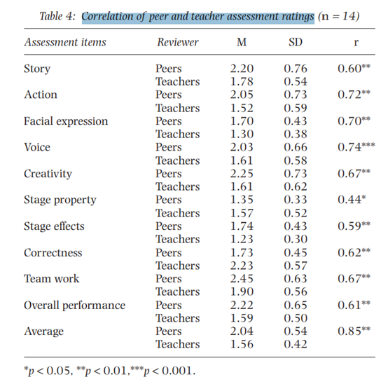 一种基于网络的同伴评估方法,可提高初中学生表演艺术课程的表现,自我效能和动机