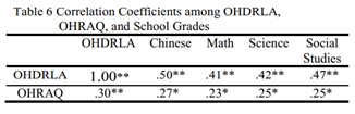 与中文,数学,科学,社会研究四门学科之间的关系 与中文的相关性最高