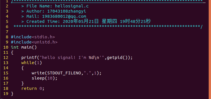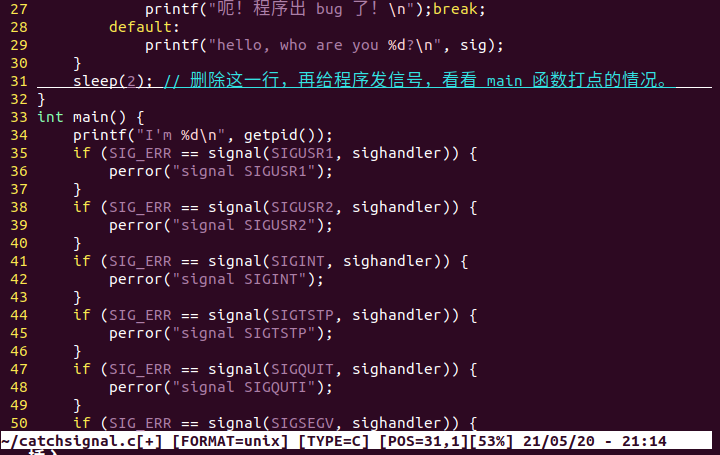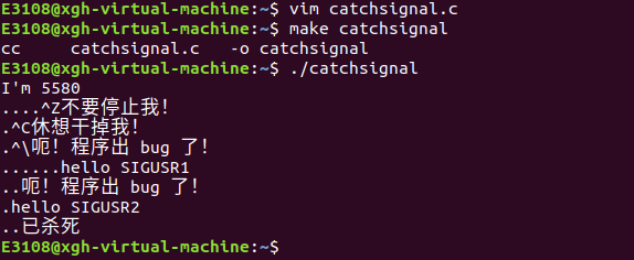 大家试着多次运行该程序然后发送不同的信号相应的进程来观察进程对接收到的信号的反应.