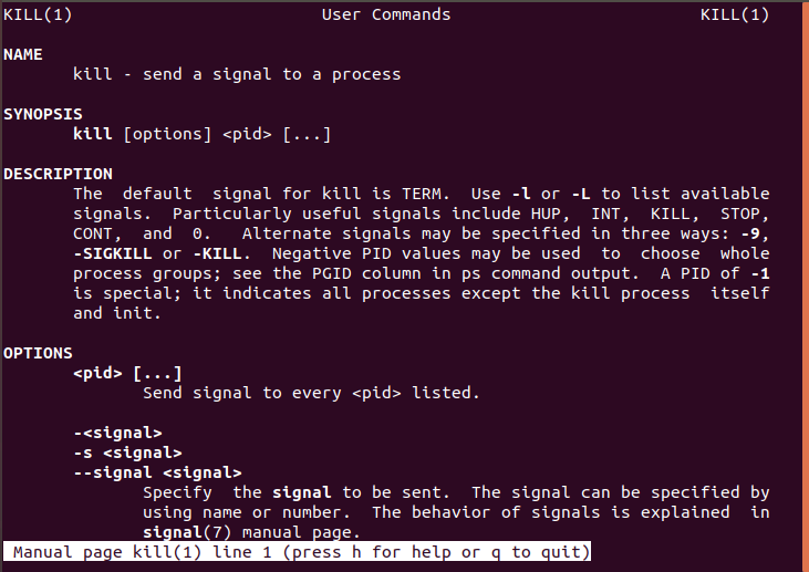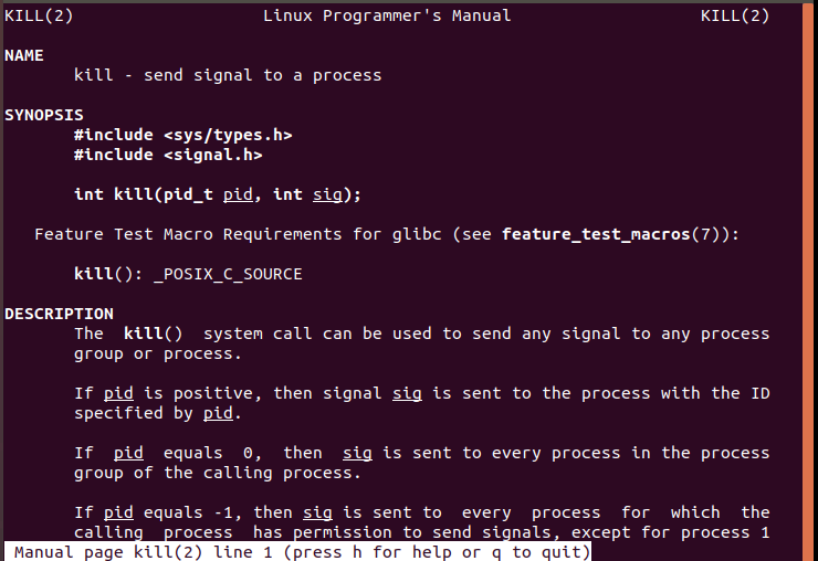我们可以查看手册看看 kill() 函数: man 2 kill