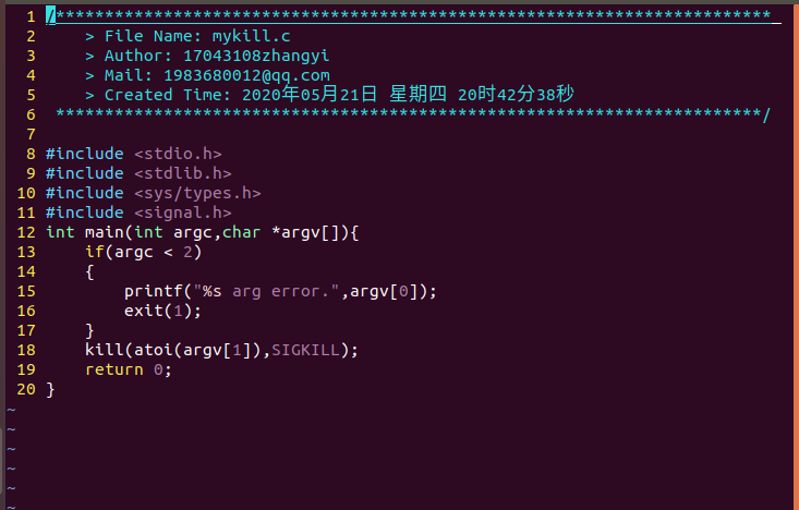 我们编写一个简单的程序,该程序调用 kill() 函数向某个进程发送信号
