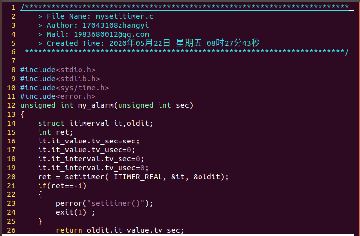接下来我们用 setitimer() 函数实现 alarm() 函数