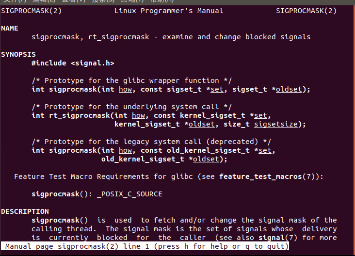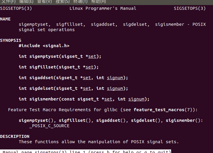 我们可以通过命令 man 3 sigsetops 来查看手册