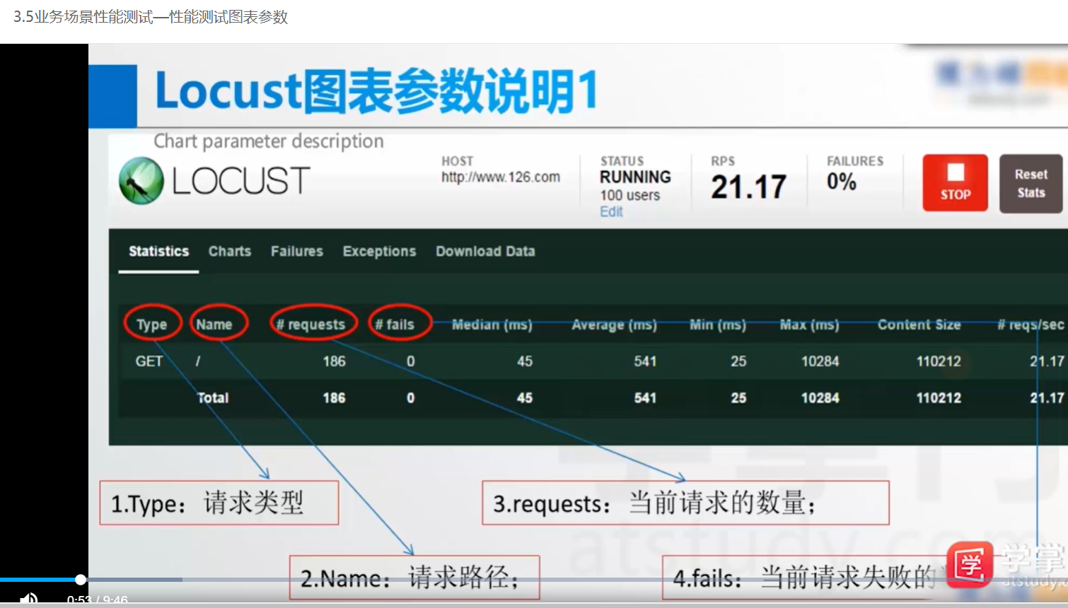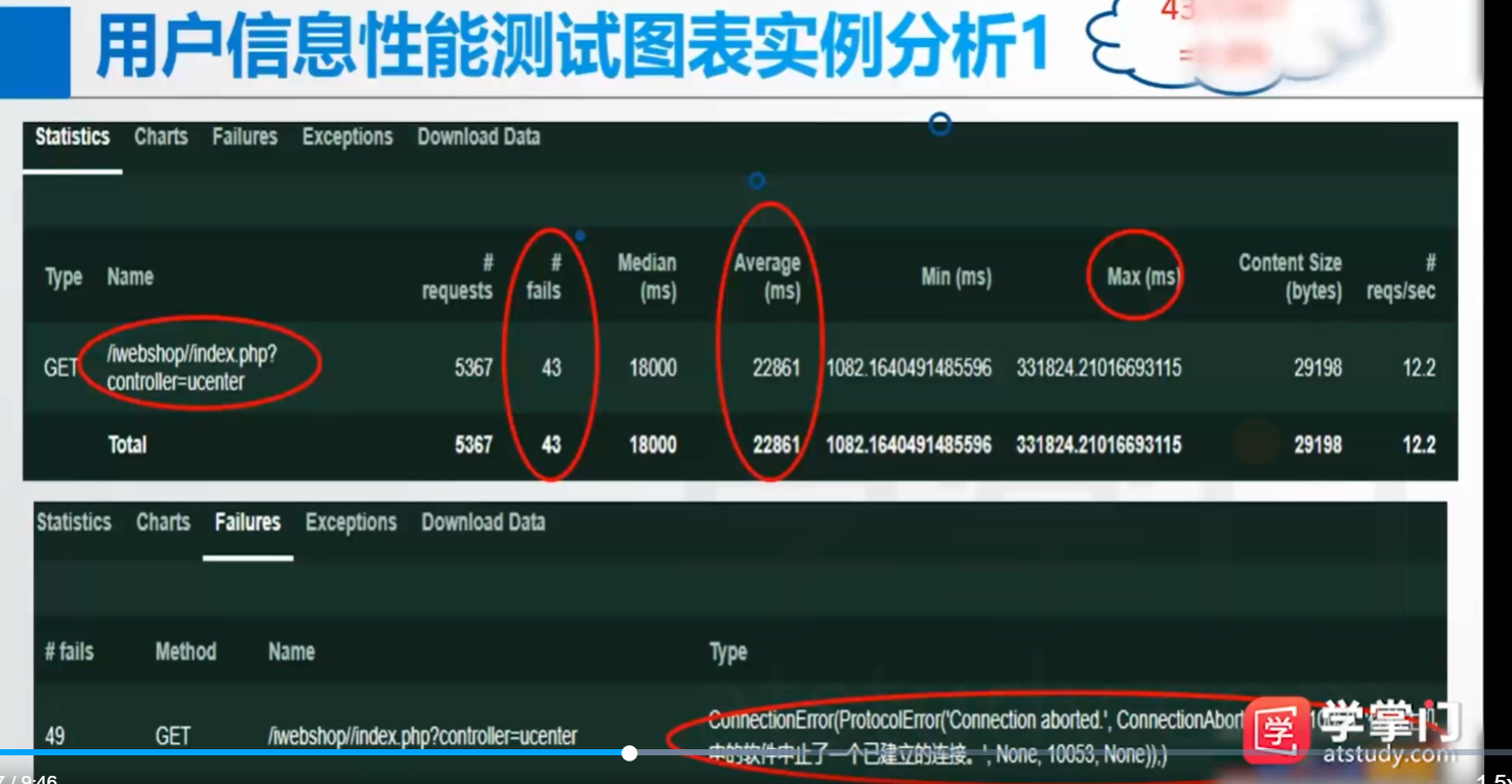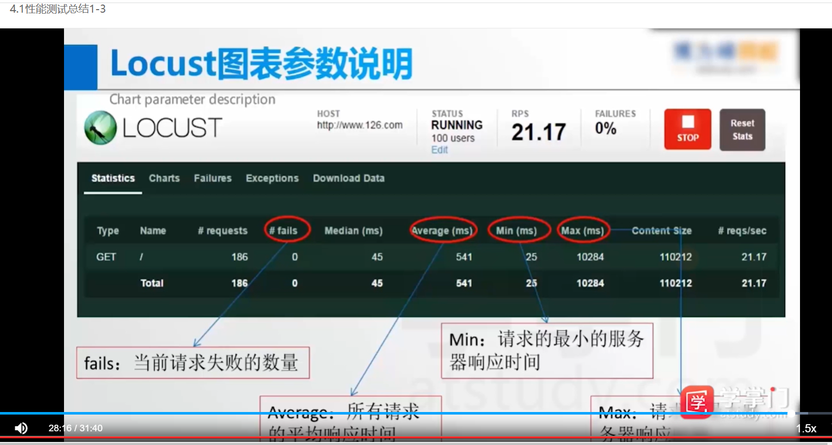 通常关注fails和响应时间,1-3s比较好,大于10s不好,1000ms=1s 22861ms=22s多