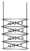 \(i=2\),\(a_2=4\),\(a_2\) 大于栈顶 \(a_1=1\),为了保证这个栈的单调递减性,需要将栈顶弹出。