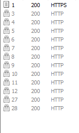 浏览器打开需要测试的url,可以看到url被fiddler拦截到,并出现在列表中。