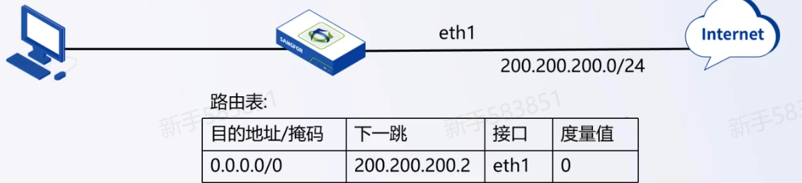 4、配置默认路由,保证内网用户访问互联网。