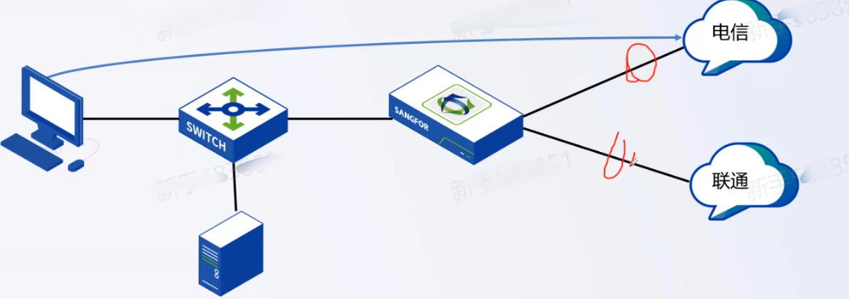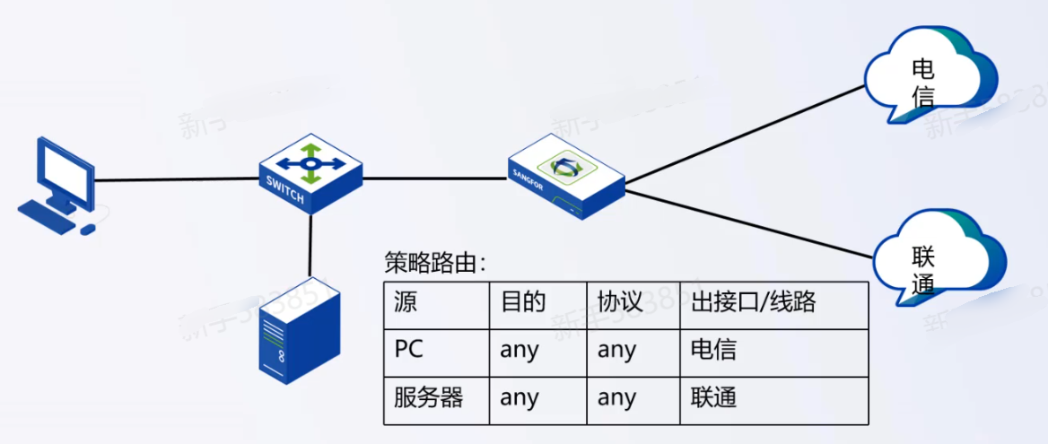 1、配置访问电信资源走电信线路出口;