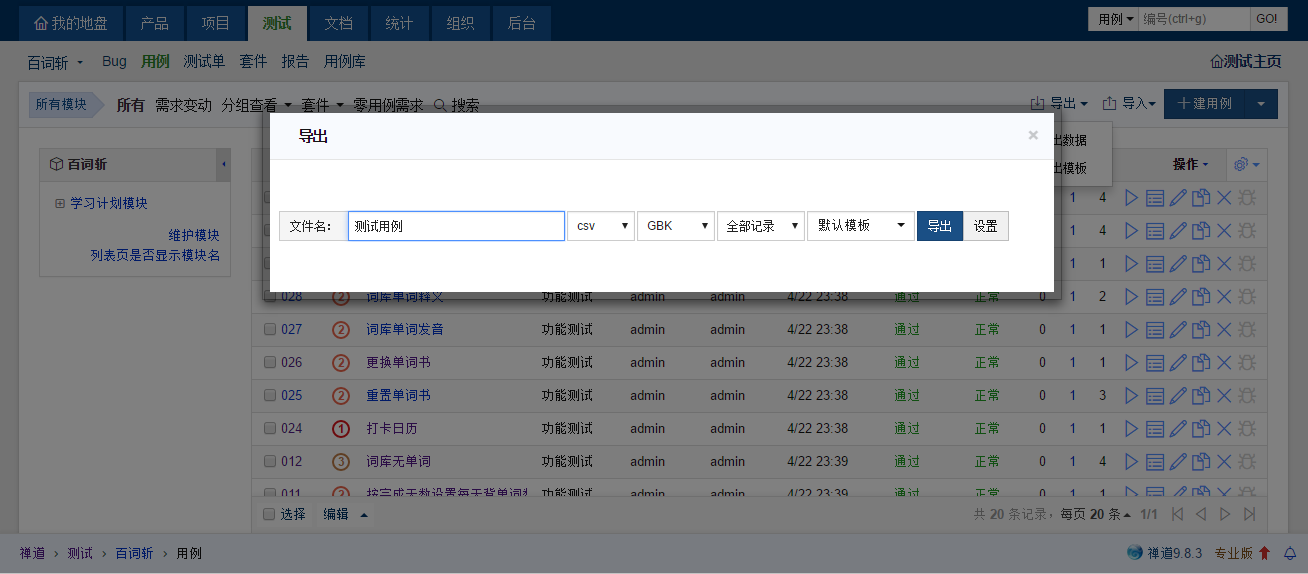 用例导出: