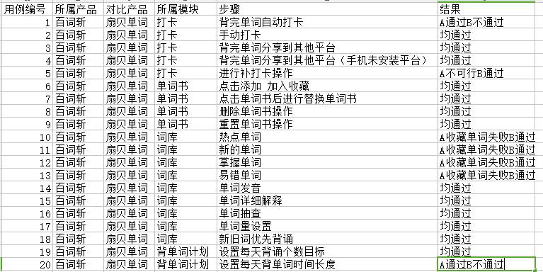 对比以上测试用例,得出以下表格: