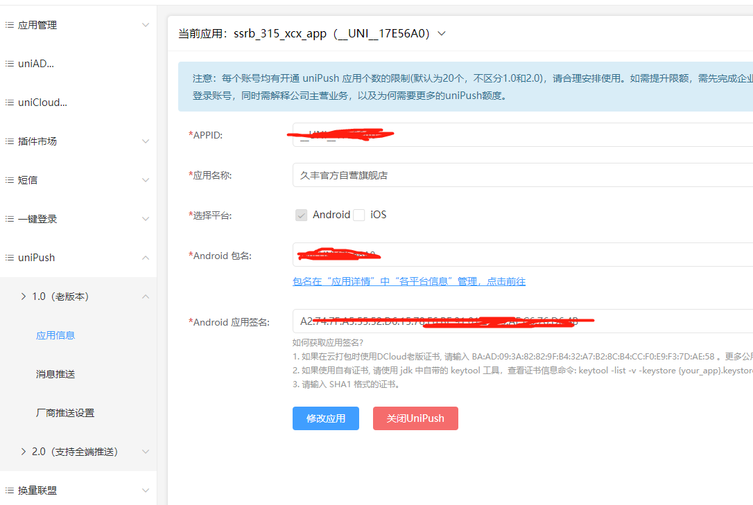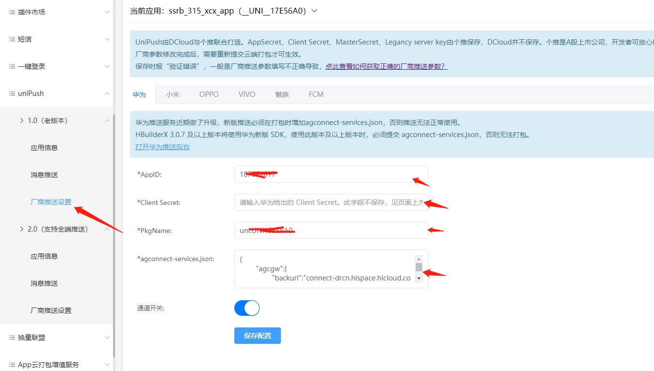 6.华为后台将安卓应用的几个渠道参数配置到uni后台