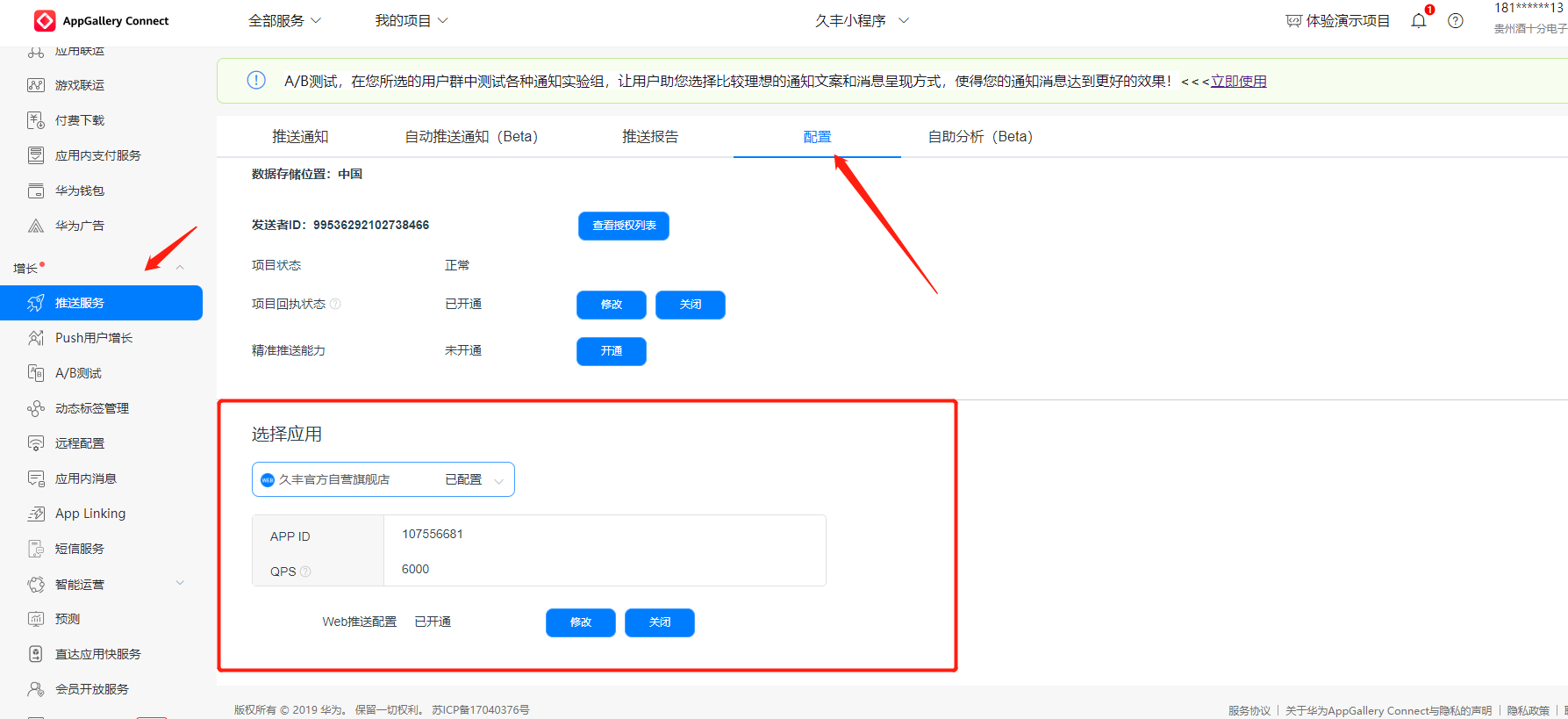 5.华为后台开通推送服务,并将Web应用配置好,安卓应用可以不配置