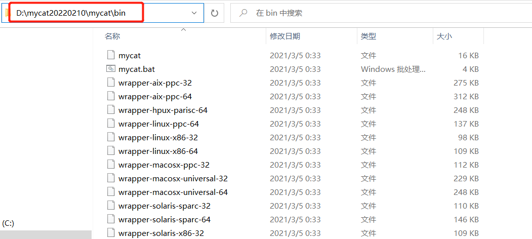 解释:解压ZIP文件之后,会得到一个mycat文件夹