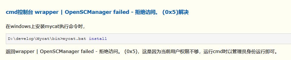 (1)以管理员身份运行cmd,切换到bin目录中,这个根据你自己所安装mycat的路径