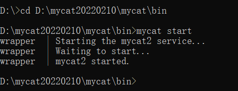 (5)启动,切换到bin目录下,启动命令:mycat start