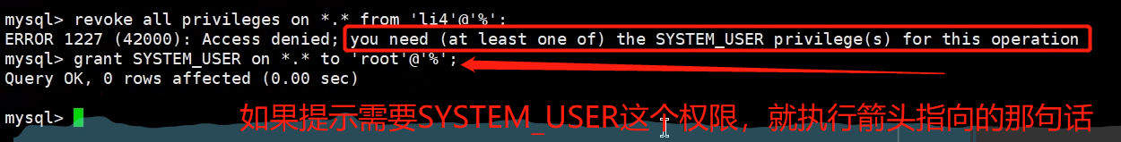 REMOVE ALL PRIVILEGES ON *.* FROM 'zhang3'@'%';