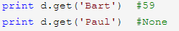 二是使用dict本身提供的一个 get 方法,在Key不存在的时候,返回None: