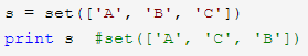 (3)创建 set 的方式是调用 set() 并传入一个 list,list的元素将作为set的元素: