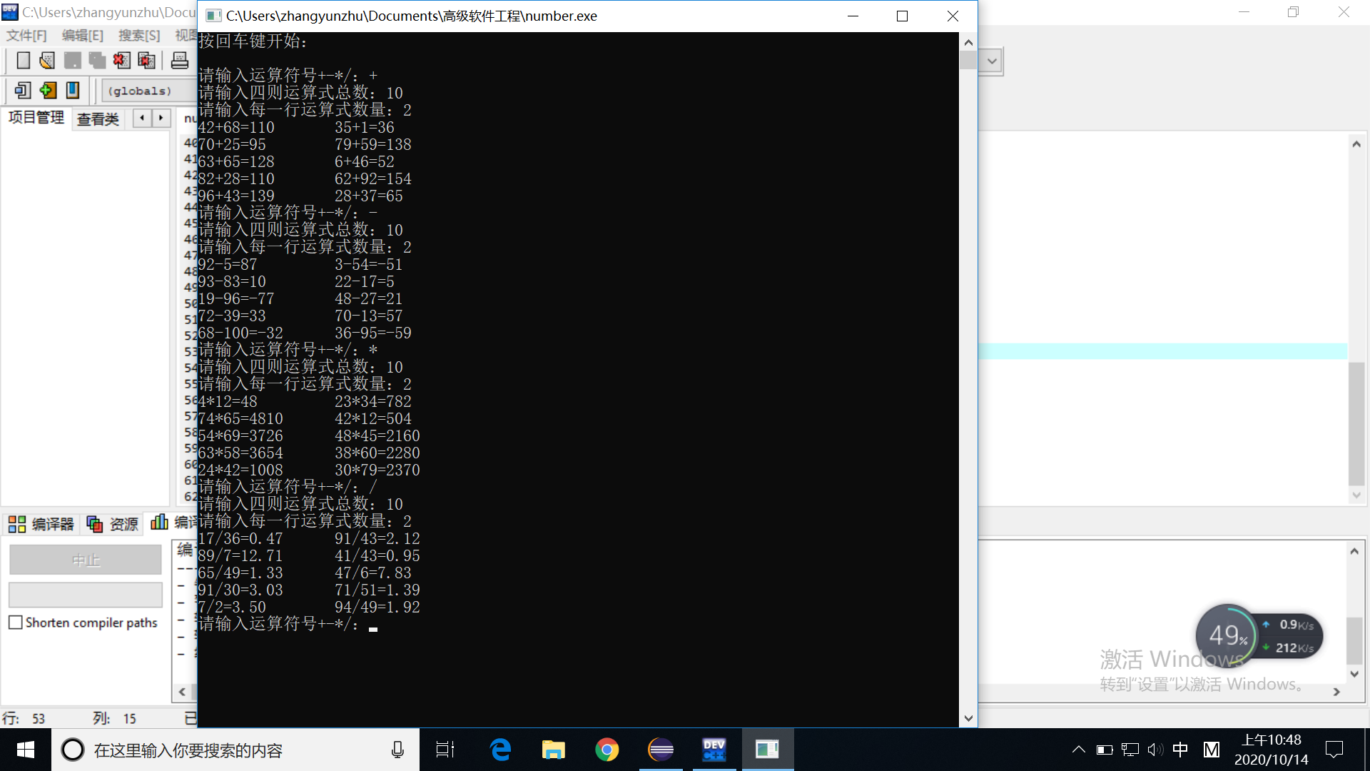 printf("请输入每一行运算式数量:");