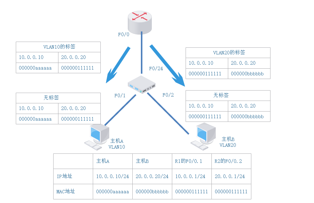 - 路由器的物理接口可以被划分成多个逻辑接口