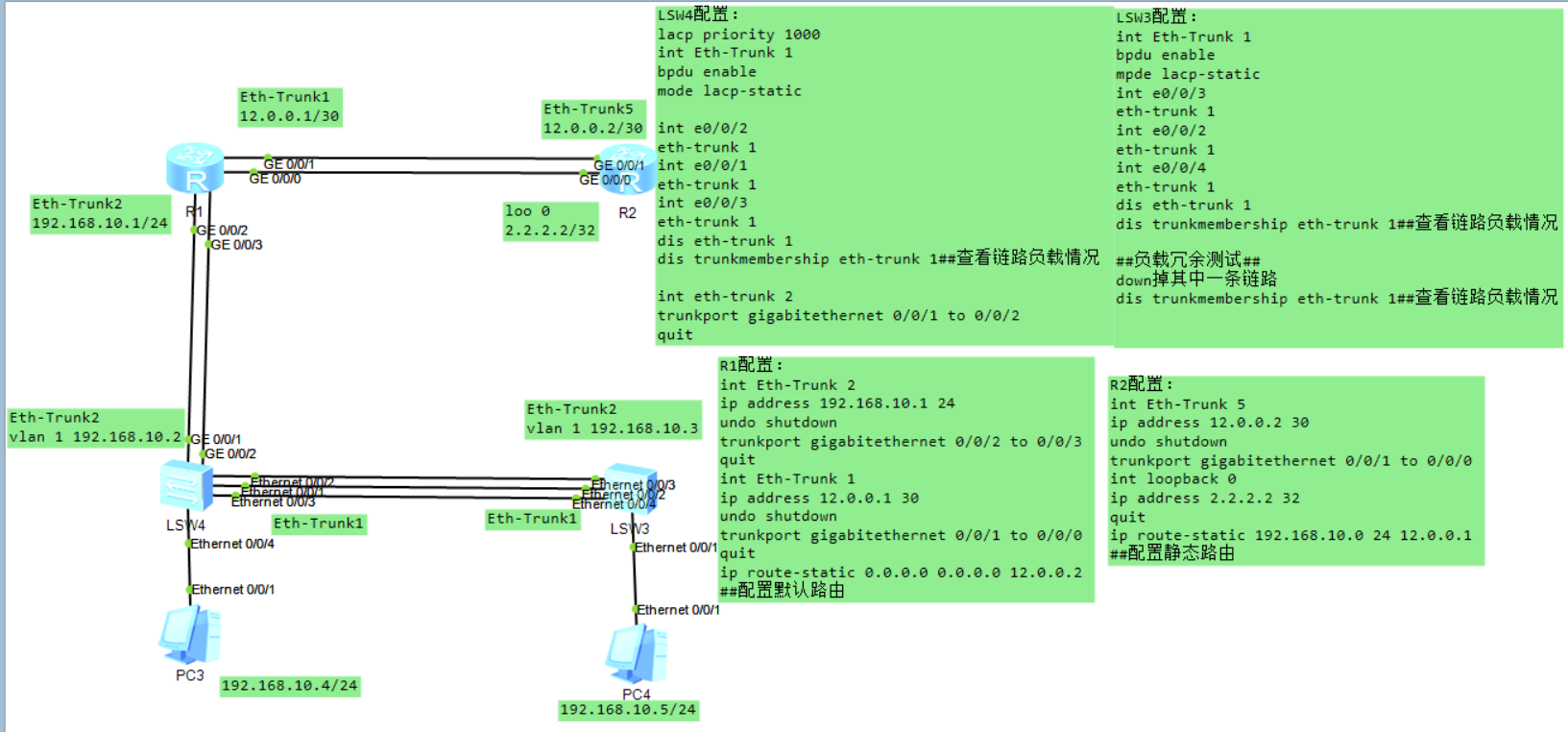LACP模式不仅可以实现增加带宽,提高可靠性、负载分担的目的,而且可以提高Eth-Trunk的容错性,提供备份功能。