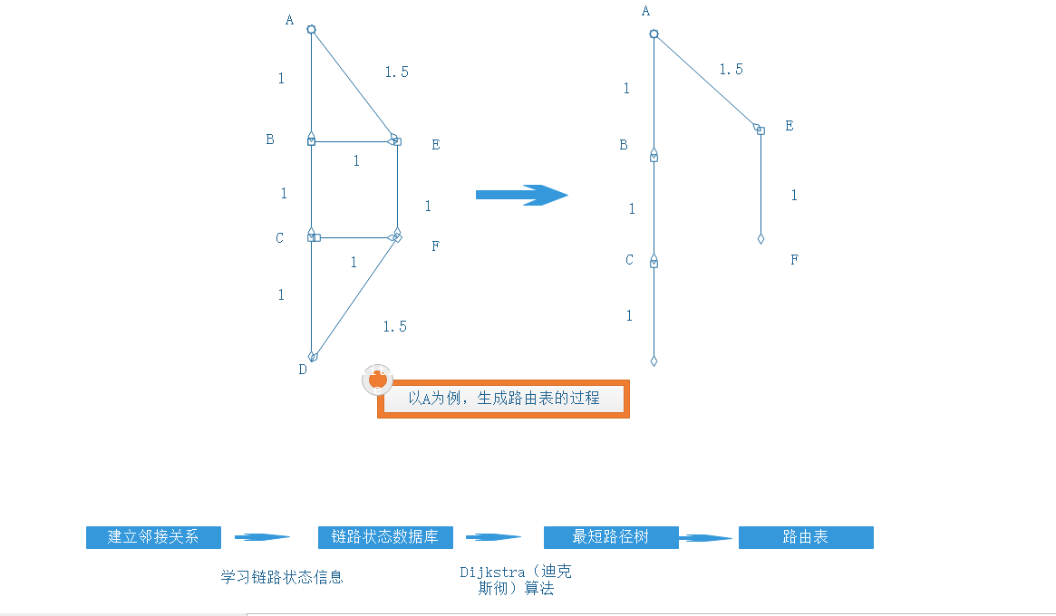 | 链路状态更新包(LSU) | 收到LSR后发送链路状态通告(LSA)一个LSU数据包可能包含几个LSA |