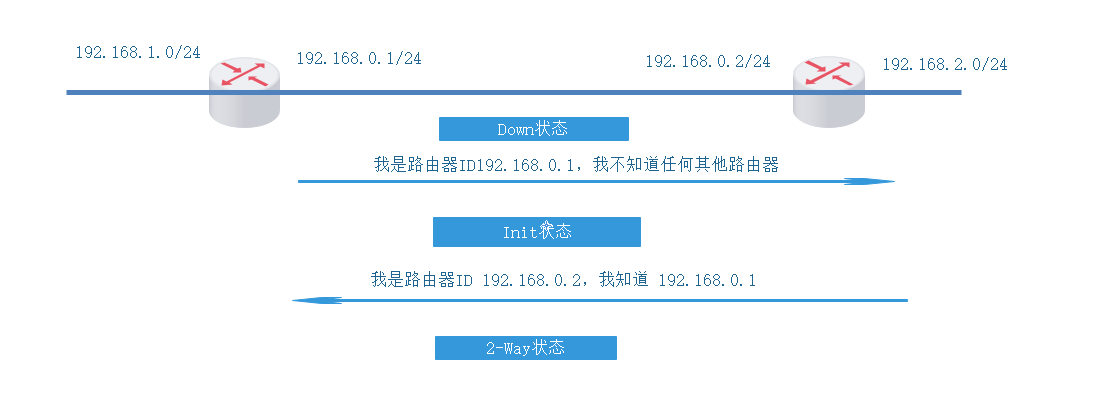 - OSPF启动的第一个阶段是使用Hello报文建立双向通信的过程