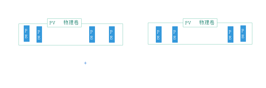 - PV(Physical Volume ,物理卷):是LVM机制的基本存储设备,通常对应为一个普通分区或整个硬盘。创建物理卷是,会在分区或硬盘头部创建一个保留区块,用于记录LVM的属性,并把存储空间分割成默认大小为4MB的基本单元(PE),从而构成物理卷