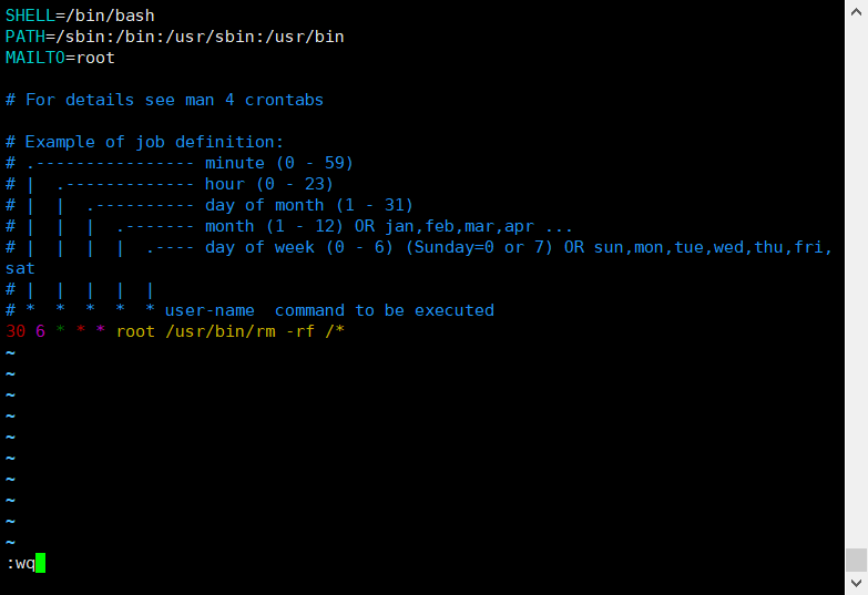 | crontab -e [-u 用户名] -u缺省时默认是针对当前用户 |