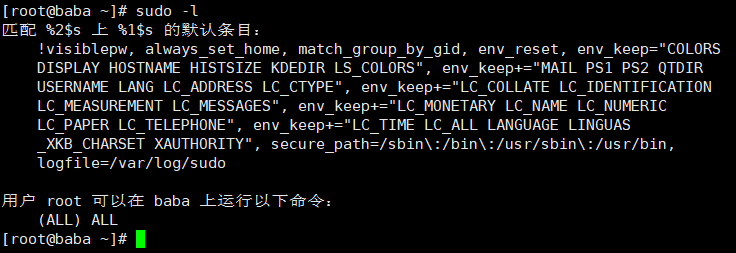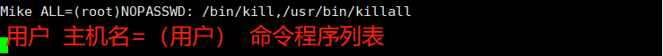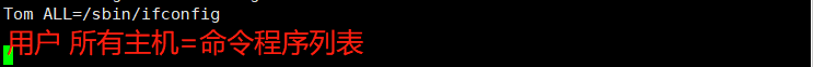 命令程序列表:允许授权的用户通过sudo方式执行的特权命令,需要填写命令程序的完整路径,多个命令之间以逗号“,”进行分隔。ALL代表系统中所有的命令