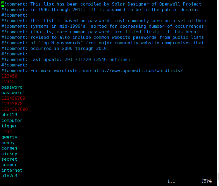 接下来我们试一下在字典中加入root的密码;保存并退出