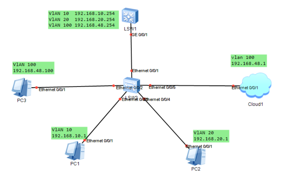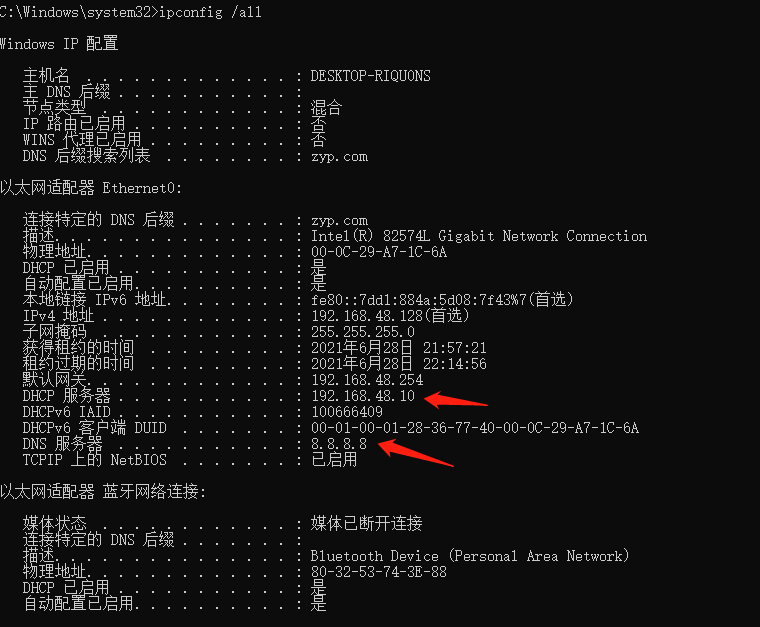 ##完成,ensp中能获得dhcp服务器的地址,虚拟机中的主机也能获得dhcp服务器