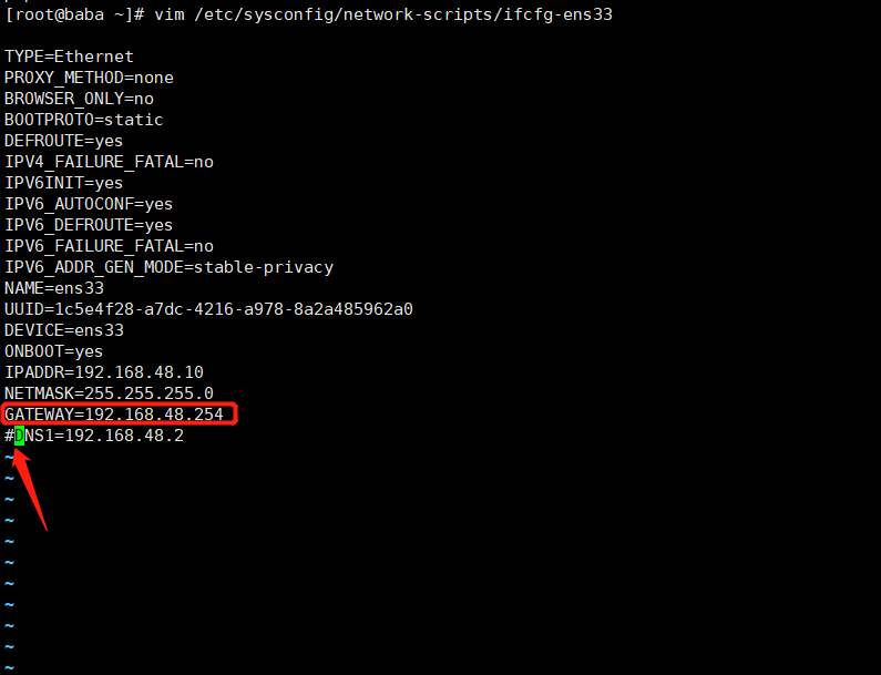 接下来别忘记配置网关和注释DNS,不然会ping不通