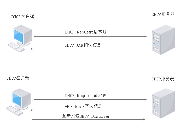 DHCP客户机每次重新登录网络时,不需要在发送DHCP Discover信息,而是直接发送包含前一次所分配的IP地址的DHCP Request 请求信息