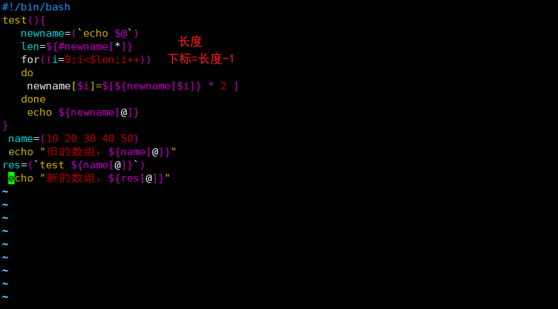数组名=(vlaue0 vlaue1 vlaue2 ...)