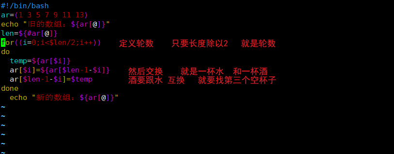 把数组最后一个元素与第一个元素替换,倒数第二个元素与第二个元素替换,以此类推,直到把所有数组元素反转替换