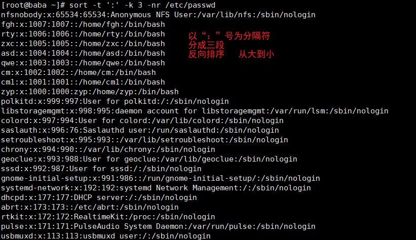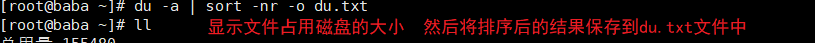 | -o | <输出文件>:将排序后的结果转存至指定文件 |