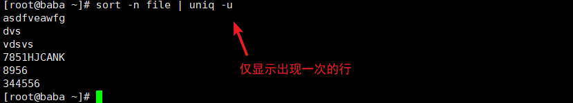 用于报告或者忽略文件中连续的重复行,常与sort命令复合使用