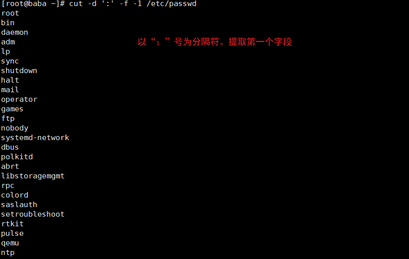 | -f | 通过指定哪一个字段进行提取。cut命令使用”TAB“作为默认的字段分隔符 |
