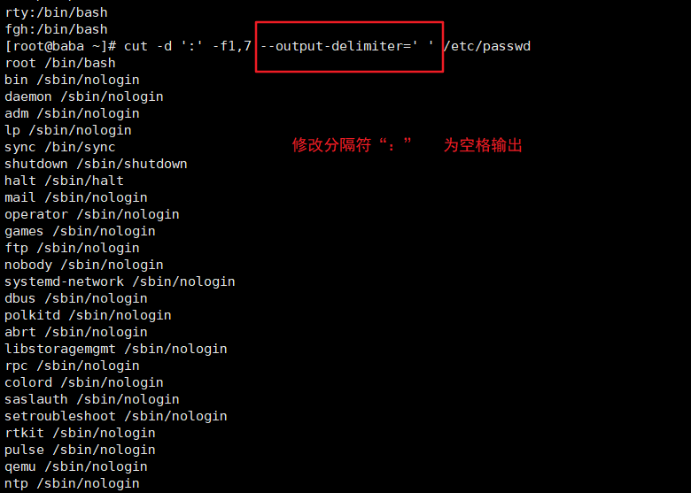 | -d | “TAB”是默认的分隔符,使用此选项可以更改为其他的分隔符 |