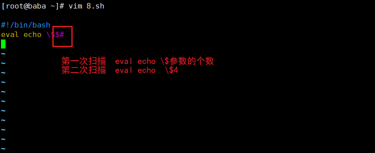 前面加上eval时,shell就会在执行命令之前扫描它两次。eval 命令将首先扫描命令进行所有的置换,然后再执行该命令。