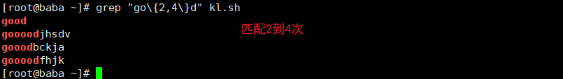 注:egrep、awk使用 {n} 、{n,}、{n,m}匹配时“{ }”前不用加“\”