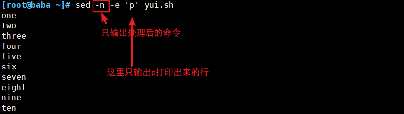 | -n、--quiet 或 silent | 禁止sed编辑器输出,但可以与p命令一起使用完成输出 |