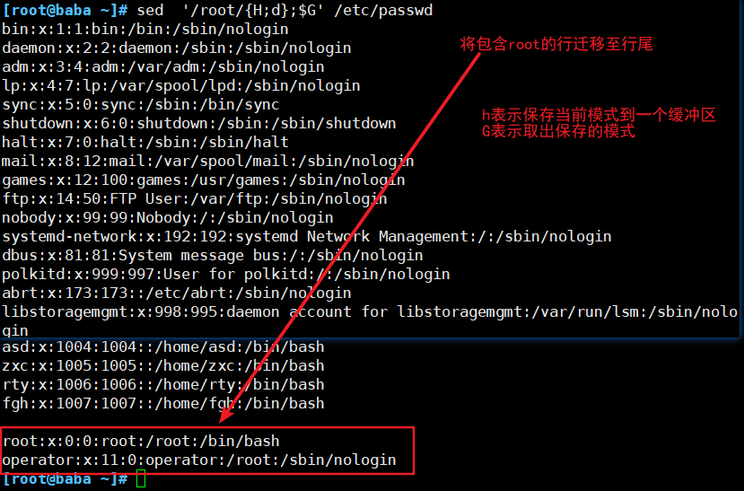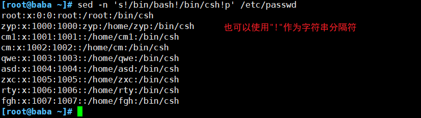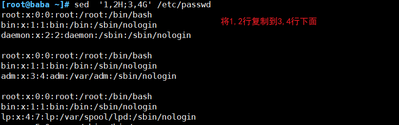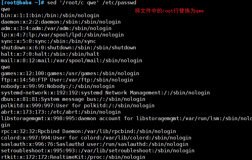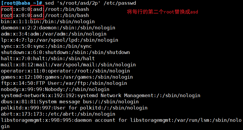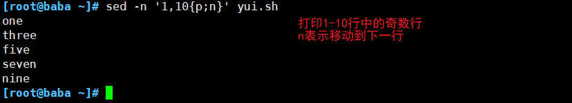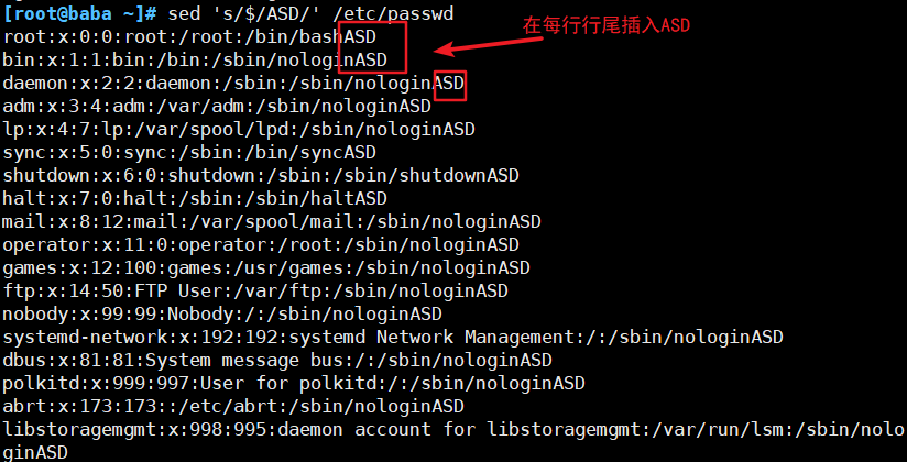 注:默认情况下所有的sed命令都是在模式空间内执行的,因此输入的文件并不会发生任何变化,除非是用重定向存储输出